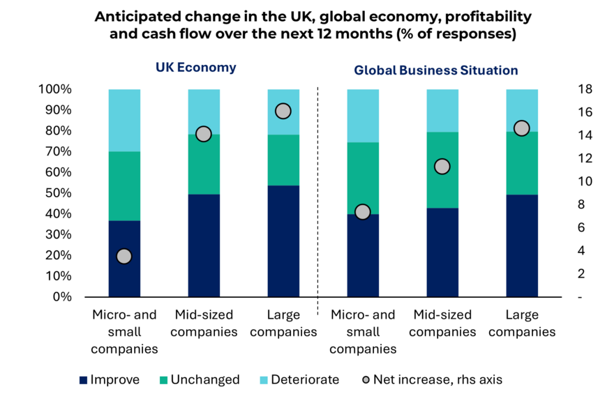 Apesar dos desafios atuais, há sinais de esperança. Mais de um terço das empresas espera uma redução nos atrasos nos pagamentos em 2026, impulsionadas por uma melhoria no sentimento económico e pelas expectativas de maior rentabilidade e liquidez. No entanto, este otimismo não é uniforme: as micro e pequenas empresas mantêm-se mais céticas — 66% acreditam que a economia britânica irá deteriorar-se ou permanecer inalterada em 2026 — e vários setores continuam a enfrentar riscos estruturais, como a volatilidade das taxas de juro, ameaças cibernéticas e perturbações nas cadeias de abastecimento.